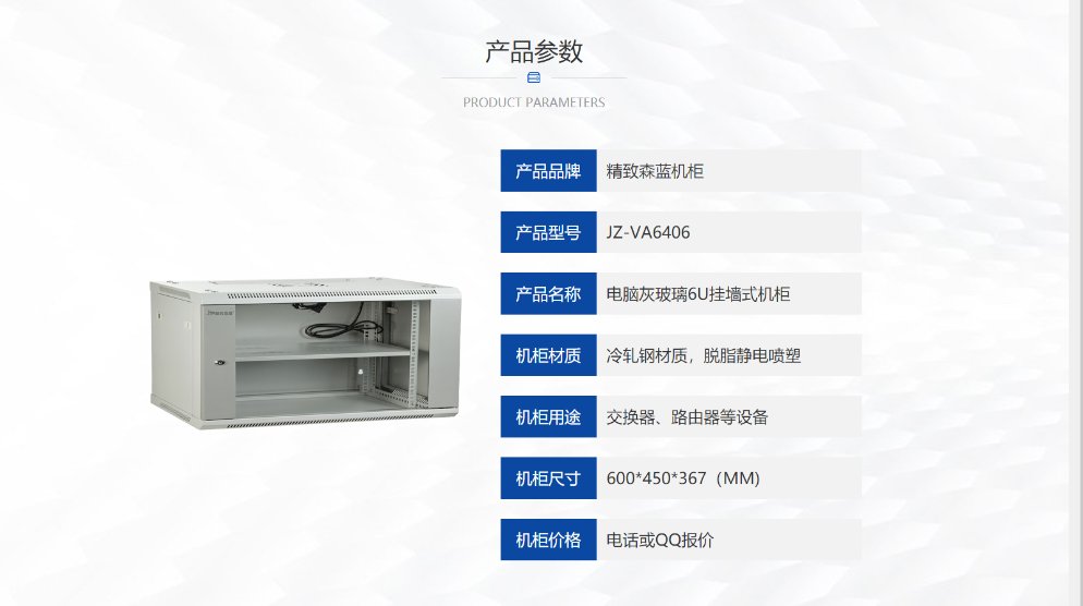 6U掛墻機(jī)柜尺寸:JZ-VA6406(寬600mm*深450mm*高367mm)