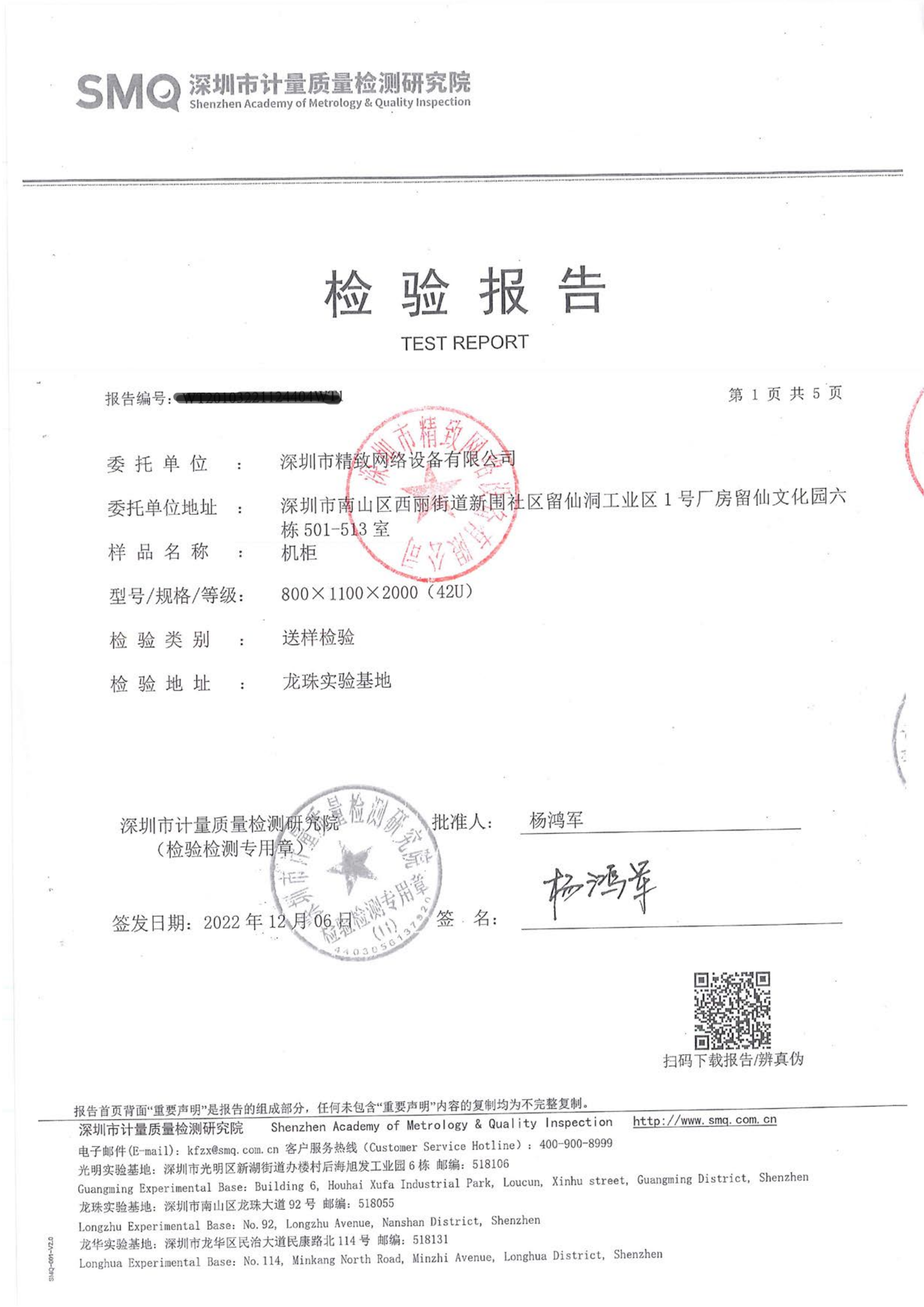精致森藍(lán)機(jī)柜G型材機(jī)柜檢測(cè)報(bào)告